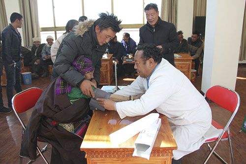 3月12日,在自治區(qū)政協(xié)駐那曲縣羅瑪鎮(zhèn)、古路鎮(zhèn)駐村工作隊的協(xié)調下,西藏阜康醫(yī)院派出2個醫(yī)療隊分赴羅瑪鎮(zhèn)5村、6村、7村和古路鎮(zhèn)1村開展為農牧民免費體檢和送醫(yī)送藥活動,切實把黨和政府的關懷和溫暖送到了農牧民群眾心坎上。