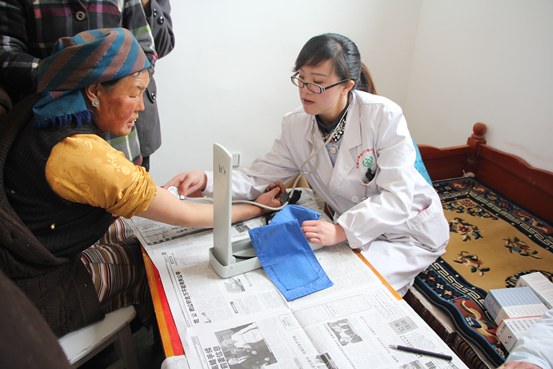 阜康醫(yī)院陳醫(yī)生 認(rèn)真的給每位到場(chǎng)患者測(cè)量血壓
