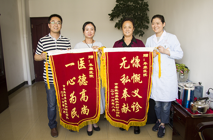 8月8日,為了表彰阜康醫(yī)院對(duì)林周縣朱加村和甘曲村人民群眾衛(wèi)生健康意識(shí)的提高和衛(wèi)生保健體系的完善所做出的貢獻(xiàn),市委政法委駐朱加村、甘曲村工作隊(duì)特意為阜康醫(yī)院送來錦旗,以示感謝和表彰,阜康醫(yī)院總院長(zhǎng)敖德秀同志、阜康醫(yī)院副院長(zhǎng)扎西頓珠同志代表阜康醫(yī)院接受了表彰。敖德秀總院長(zhǎng)表示,我們阜康醫(yī)院一定會(huì)再接再厲把健康帶到西藏的各個(gè)村落,為西藏人民的健康事業(yè)做出應(yīng)有的貢獻(xiàn)。