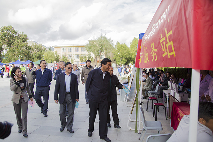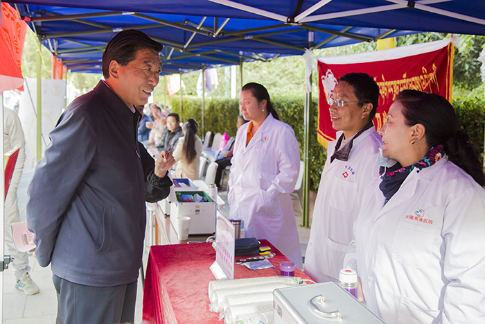 西藏自治區(qū)人大常委會(huì)副主任、西藏大學(xué)黨委書記尼瑪次仁,西藏大學(xué)黨委委員、副校長(zhǎng)白瑪次仁,西藏大學(xué)黨委委員、副校長(zhǎng)張興堂及西藏大學(xué)各學(xué)院院長(zhǎng)等領(lǐng)導(dǎo)在新生入學(xué)巡查工作中,于阜康醫(yī)院義診點(diǎn)與我院義診人員進(jìn)行了交流,表示校區(qū)定會(huì)全力配合與支持我院的義診工作,并再三對(duì)我院義診隊(duì)表達(dá)了誠(chéng)摯的感謝。