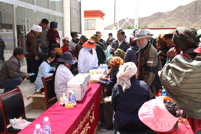 由西藏阜康醫(yī)院內(nèi)科、婦科、心腦血管科、體檢中心8名醫(yī)療、檢驗專家組成的義診隊,免費為村民進行健康體檢、發(fā)放常用藥、健康知識宣傳和常見病、慢性病的咨詢、初篩、診斷等,把診療和關(guān)愛送到村民家門口。在義診中,村民們積極與醫(yī)生溝通,詳細(xì)說明自己身體的病痛,咨詢各類疾病預(yù)防和健康保健知識。醫(yī)生們認(rèn)真地給村民量血壓、測血糖、查身體,診斷病情,宣講慢性病診療、政府治療優(yōu)惠政策等,村民們都稱贊義診醫(yī)生們的熱情和專業(yè)。
