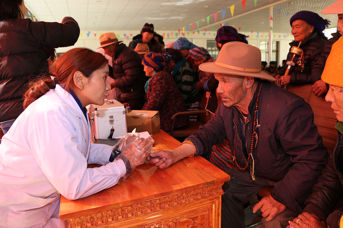 隨后,西藏阜康醫(yī)院義診醫(yī)療隊(duì)開始了義診活動(dòng):測(cè)血糖、量血壓、拔火罐、問診送藥。老人們求醫(yī)問藥,熱情踴躍,義診醫(yī)療隊(duì)認(rèn)真地接待每一位咨詢者,并細(xì)致聆聽與診斷,耐心解答他們心中的疑問,對(duì)需要進(jìn)一步治療的老人提供詳細(xì)的診療指導(dǎo),整個(gè)活動(dòng)大廳秩序井然,醫(yī)務(wù)人員的細(xì)致和耐心受到了老人們的一致好評(píng)。