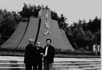 三位老人在井岡山前握手留影