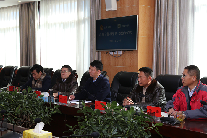 最后,西藏阜康醫(yī)療股份有限公司總院長孫貴林和拉薩城投公司副總經(jīng)理格桑央宗在兩位董事長的見證下簽訂了這份戰(zhàn)略合作框架協(xié)議,協(xié)議簽署旨在整合資源,最終為西藏大健康產(chǎn)業(yè)謀求新的發(fā)展,提升西藏醫(yī)療衛(wèi)生健康事業(yè)發(fā)展,為2020年“大病不出藏”做出城投和阜康人各自的貢獻。