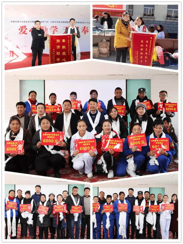 2018年2月11日,西藏阜康天使基金會(huì)和西藏阜康醫(yī)院黨委、工會(huì),在新春佳節(jié)來(lái)臨之際慰問(wèn)困難群眾和員工,根據(jù)困難程度分別發(fā)放6000元、12000元、60000元不等的慰問(wèn)金。同年11月,“西藏阜康天使基金會(huì)助學(xué)助醫(yī)捐贈(zèng)儀式”在阜康婦產(chǎn)兒童分院舉行,在本次捐贈(zèng)儀式上,西藏阜康天使基金會(huì)為西藏大學(xué)政法學(xué)院30名貧困學(xué)生,每人捐助4000元的生活補(bǔ)貼,總金額為120000元人民幣。通過(guò)這些幫扶活動(dòng)幫助了貧困員工、貧困群眾和學(xué)生走出困境、重塑生活,為他們生活注入了新的希望。