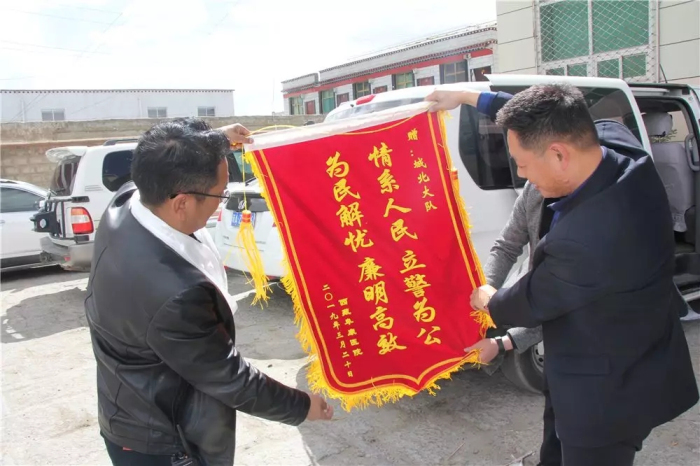為拉薩市公安局交通警察支隊城北大隊送上錦旗