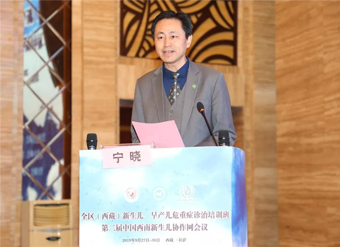 西藏阜康醫(yī)療股份有限公司總裁、西藏阜康醫(yī)院院長寧曉代表承辦方對中華醫(yī)學會兒科分會新生兒學組、中國西南新生兒協(xié)作網(wǎng)、重慶醫(yī)科大學附屬兒童醫(yī)院新生兒中心和西藏醫(yī)學會兒科專委會的信任和支持表示謝意,并預(yù)祝會議取得圓滿成功;