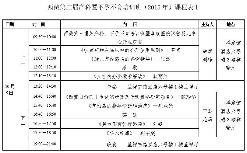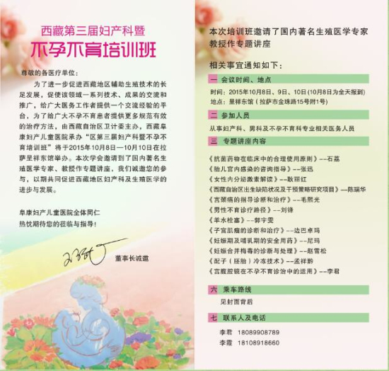 首先,我們代表西藏第三屆婦產(chǎn)科暨不孕不育培訓(xùn)班會務(wù)組熱烈歡迎您前來參加西藏第三屆婦產(chǎn)科暨不孕不育培訓(xùn)班,會務(wù)組全體工作人員將在會議期間竭誠為您提供全方位的生活、會務(wù)服務(wù)。為了您在會議期間的生活、工作和參加會議的方便、愉快,請您仔細(xì)閱讀并注意以下事項(xiàng):