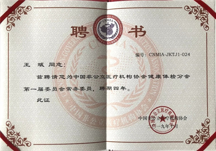 中國非公立醫(yī)療機(jī)構(gòu)協(xié)會健康體檢分會第一屆委員會常務(wù)委中國非公立醫(yī)療機(jī)構(gòu)