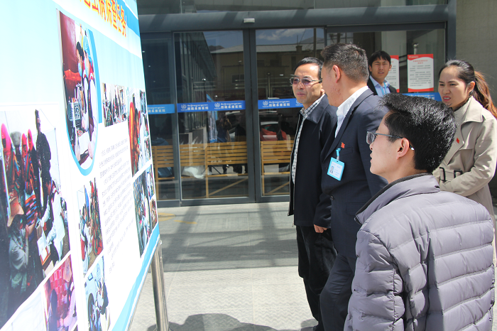 調(diào)研組領(lǐng)導(dǎo)觀看我院阿里包蟲(chóng)病篩查工作匯報(bào)展覽板