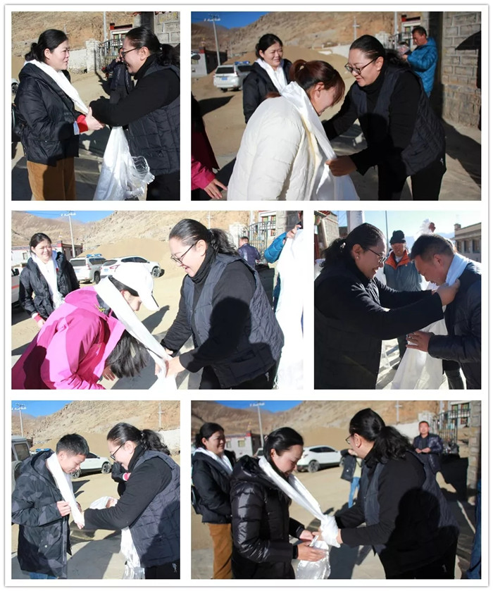 嘎布村駐村工作隊隊長為醫(yī)療隊獻(xiàn)上哈達(dá)