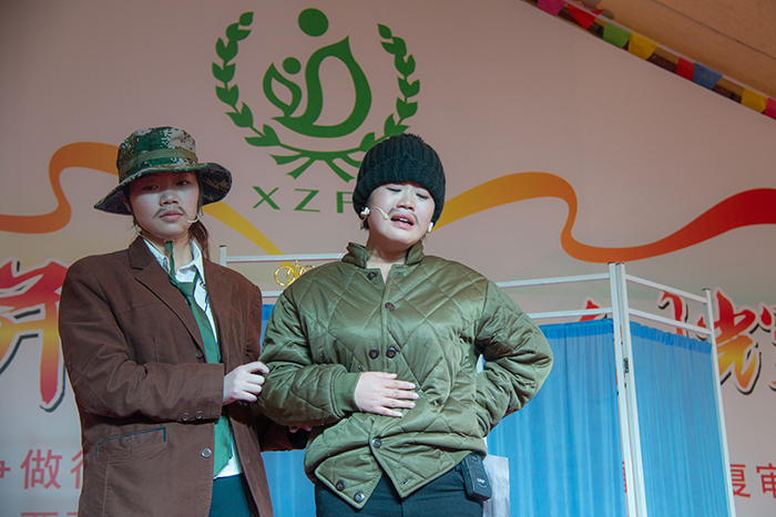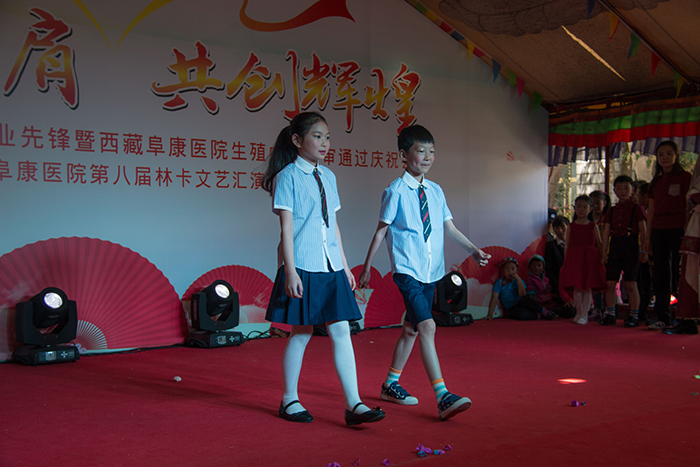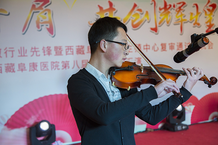 看藏裝典雅,賞舞姿婀娜。在三位主持人熱情洋溢的主持下,一曲優(yōu)雅典美的藏舞《芒康弦子》正式拉開了本次林卡文藝匯演的帷幕,也再度點(diǎn)燃了大家的林卡情懷!隨后,由醫(yī)院各科室員工帶來的諸如藏語歌曲演唱、小提琴演奏、架子鼓演奏、吉他演奏、古箏演奏、軍禮表演、現(xiàn)代舞蹈、獨(dú)舞、歌唱、小品、相聲、T臺(tái)秀、大合唱等一系列精彩紛呈的節(jié)目應(yīng)接不暇地呈現(xiàn)在大家眼前,讓現(xiàn)場(chǎng)觀眾為之歡呼雀躍,好不開懷。同時(shí),在本次的林卡文藝匯演中,還有一個(gè)十分特殊的節(jié)目——一個(gè)名為塔巴次仁的藏族小男孩及其家屬為我們?nèi)w阜康工作人員寫來一封感謝信,并在林卡演出現(xiàn)場(chǎng)為大家演唱了一首《感恩的心》。
