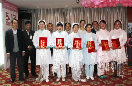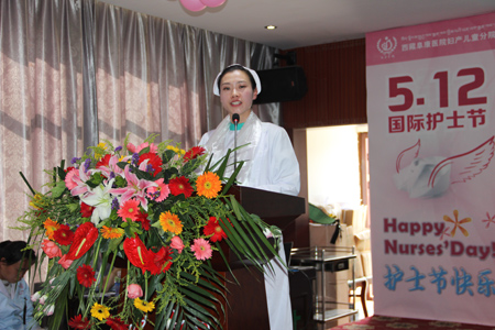 下午是“5.12國(guó)際護(hù)士節(jié)”慶祝活動(dòng),同去年一樣例行勤儉節(jié)約只是搞了一個(gè)簡(jiǎn)單地茶話會(huì),但是滿桌的水果,粉紅色的節(jié)日慰問(wèn)語(yǔ),美麗的鮮花都是院領(lǐng)導(dǎo)對(duì)護(hù)士姐妹們最由衷的節(jié)日慰問(wèn)。本次慶?;顒?dòng)劉瀟瀟總經(jīng)理、陳彬總經(jīng)理、張德才院長(zhǎng)、敖德秀副院長(zhǎng)、劉連福副院長(zhǎng)、李君副院長(zhǎng)、張治副院長(zhǎng)應(yīng)邀出席,他們紛紛致辭感謝全院護(hù)士這一年的辛苦工作,并對(duì)她們寄予厚望,希望白衣天使們,銘記“患者需求至上、團(tuán)隊(duì)精誠(chéng)協(xié)作”的院訓(xùn),緊跟時(shí)代步伐,克服護(hù)理工作量大、人員緊張等諸多困難,齊心協(xié)力,努力工作,再創(chuàng)佳績(jī)。