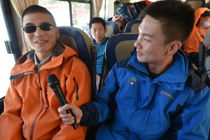 對(duì)于專業(yè)技術(shù)裝備的使用,張洪的接受能力也更強(qiáng),很快就能完全獨(dú)立并且熟練操作這些裝備。張洪說:“我主要的問題就是看不到,不知道前邊的方向和哪條路線是安全的。但是這些問題都不是問題,攀登的時(shí)候會(huì)有一條安全繩,看不到但是卻能摸得到,沿著這條繩子往上都是安全的,我只要沿著它一步一步往上攀登,就能登上山頂。話聽著很簡(jiǎn)單,但還是很難想象如此陡峭的山峰,如此厚重的積雪,一個(gè)盲人要克服多少困難才能登頂。”