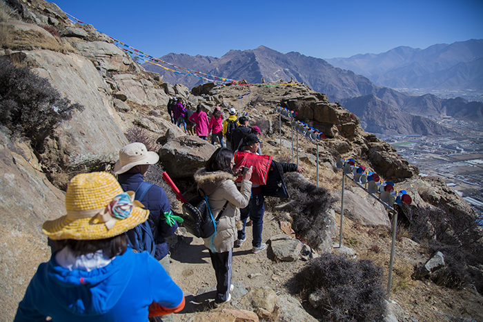 為保證參加活動(dòng)人員的人身安全,支部對(duì)參加人員著裝、隨身攜帶物品等做出了明確規(guī)定,所有人從阜康婦產(chǎn)兒童分院集合統(tǒng)一出發(fā)驅(qū)車前往色拉寺。我們將人員分為三隊(duì),為保證體力給大家發(fā)放了水果、水、巧克力等,同時(shí)還給帶隊(duì)的小組長分發(fā)了垃圾袋,鑒于西藏脆弱的生態(tài)環(huán)境,為保護(hù)大山環(huán)境,我們要求所有人員把爬山過程中產(chǎn)生的垃圾,和以前轉(zhuǎn)山者遺留下的垃圾一并帶走,為環(huán)境保護(hù)貢獻(xiàn)自己微小的力量。