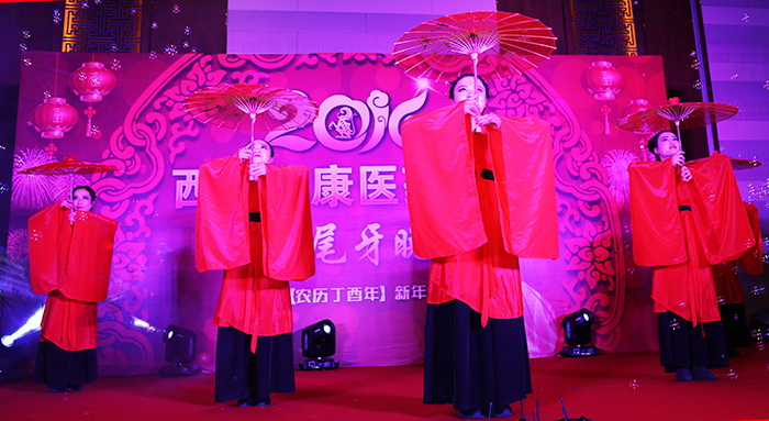 隨后阜康醫(yī)藥年終尾牙晚會正式開始,優(yōu)雅古典的《禮之舞》、幽默詼諧的《碰瓷》、歡快的《青春踢踏》、令人警醒的《手機綜合癥》、活潑性感的《百老匯》伴隨著激動的百元紅包、希諾水杯、微波爐、ipad抽獎活動一次次把晚會推向高潮。