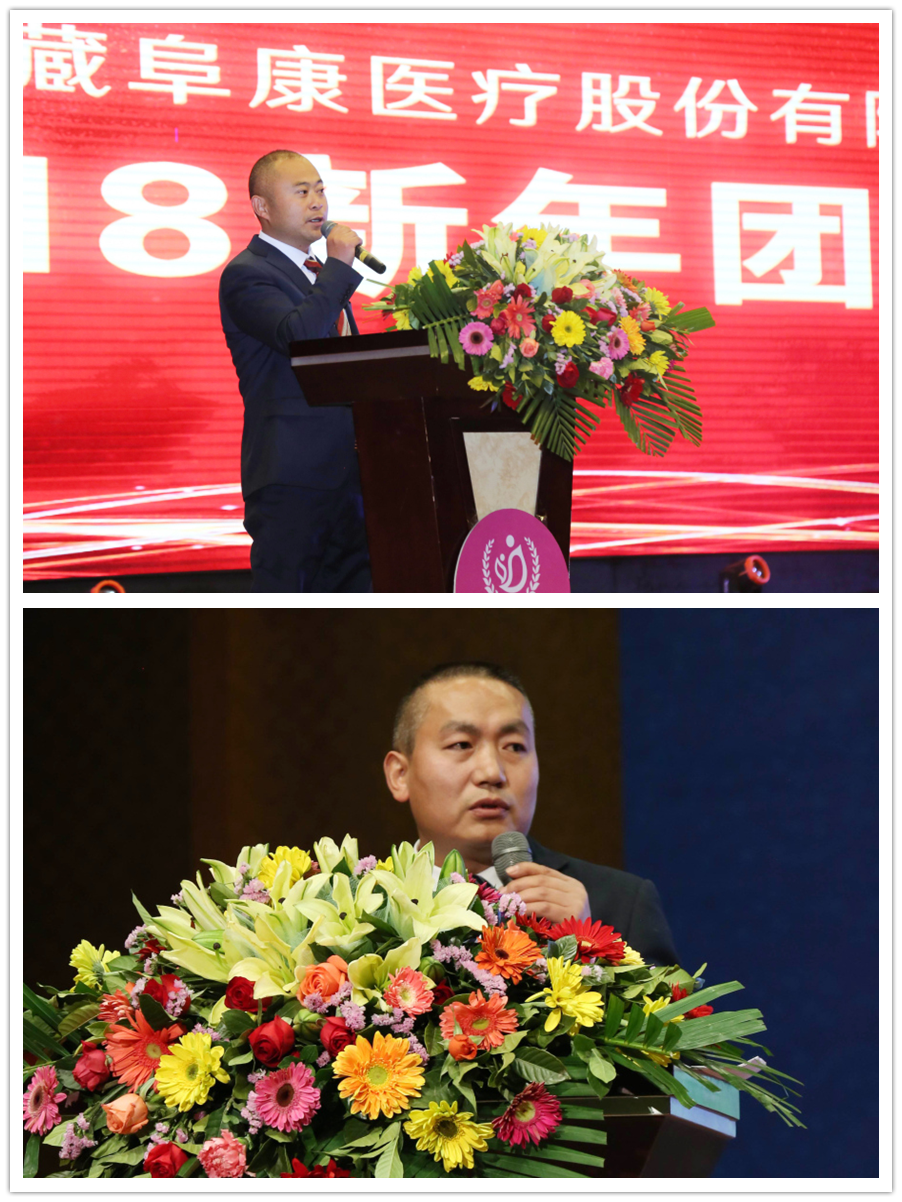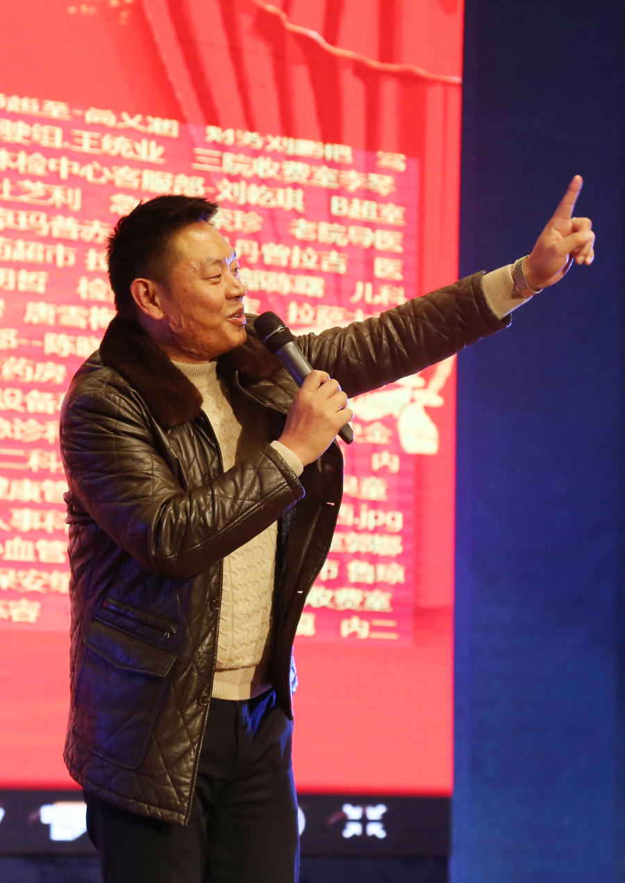 隨后,董事長(zhǎng)王斌走上講臺(tái)飽含激情地說(shuō)“我之存在,因?yàn)橛心?rdquo;,并向所有來(lái)賓鞠躬致謝。董事長(zhǎng)王斌講述了阜康發(fā)展史、阜康人的奮斗史,從2005年的47名員工到現(xiàn)在的1024名員工,并再次感謝一路伴隨阜康成長(zhǎng)的所有人,還指出2018年是阜康發(fā)展史上很關(guān)鍵的一年,要早計(jì)劃、早安排、早部署,要以十九大精神為指導(dǎo),堅(jiān)持科學(xué)發(fā)展觀,早日把阜康建設(shè)成為現(xiàn)代化醫(yī)院。