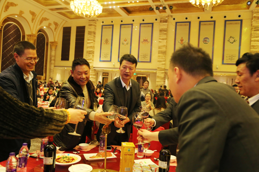 晚宴尾聲,董事長(zhǎng)王斌邀請(qǐng)所有院級(jí)領(lǐng)導(dǎo)上臺(tái)共同舉杯說(shuō):“希望大家在新的一年繼續(xù)沿著創(chuàng)新的道路團(tuán)結(jié)一致、規(guī)范管理、用心服務(wù),開(kāi)源節(jié)流地做好自己本職和醫(yī)院的工作。我相信,在各位阜康同仁的共同努力下,2018年我們一定會(huì)保質(zhì)、保量完成工作計(jì)劃。為保障西藏自治區(qū)廣大人民群眾的身體健康做出新的更大的貢獻(xiàn),促進(jìn)醫(yī)院健康、持續(xù)、穩(wěn)步地向前發(fā)展,更上一層樓,再鑄新輝煌! ”